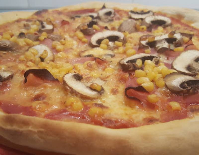 123 Mozzarella sajt, gomba, kukorica, sonka