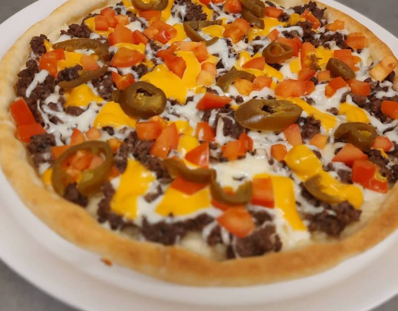 Sajtkrém alap, 123 Mozzarella sajt, chedar sajt, csirkemell roston, gomba, kukorica