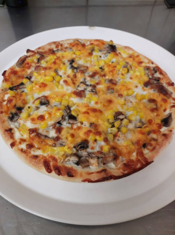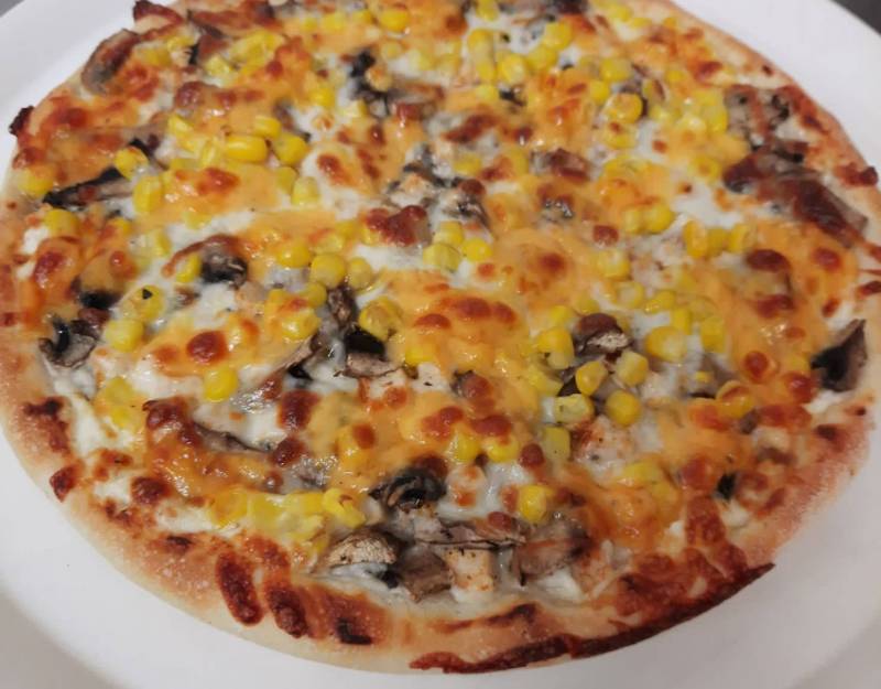 123 Mozzarella sajt, gomba, kukorica, sonka